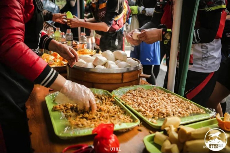 顺利到达CP1双灵村,迅速吞下一个白馒头+榨菜,两把花生米一根香蕉一只芦柑,1500L水袋装满