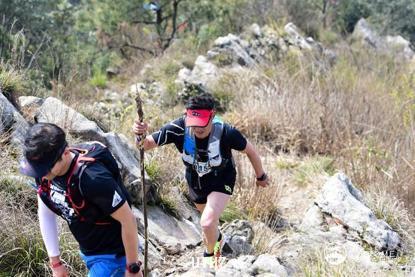 出了CP2,果然撑的走不动,四公里不到可以到CP3外桐坞村,走了70多分钟,不过也没看见有人超过我们,也许大家都吃撑了吧。太阳有点热情了,台阶还是台阶,闷热消耗着所带的盐丸和能量胶。本来就是来享受虐的滋味的,心中想着,豁然开朗。像极了人生,路上总有磕磕绊绊,起起落落,会彷徨,会迷失,那能累了就喊痛,遇挫折就气馁呢。这样想想就好多,就像团子说的,越野经验就是继续下去就对了。